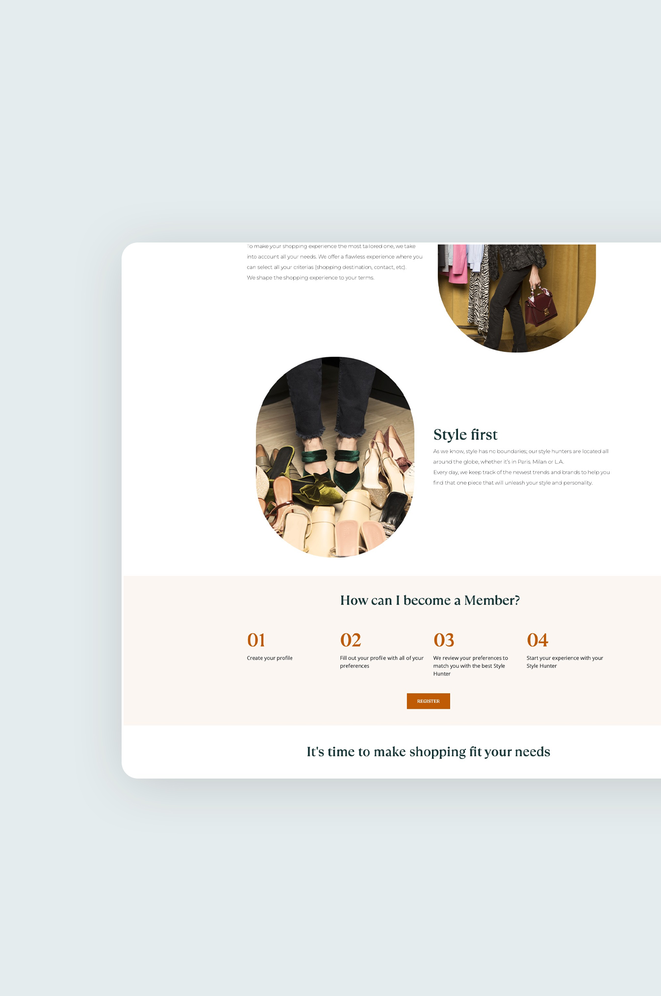 Nous croyons que le shopping n'est pas une fin mais un moyen, pour révéler qui vous êtes vraiment, pour exprimer ce que vous ressentez, pour incarner vos désirs ou pour vous rendre incroyablement beau. Nous avons construit ce club pour répondre à votre style de vie, votre agenda et vos besoins.